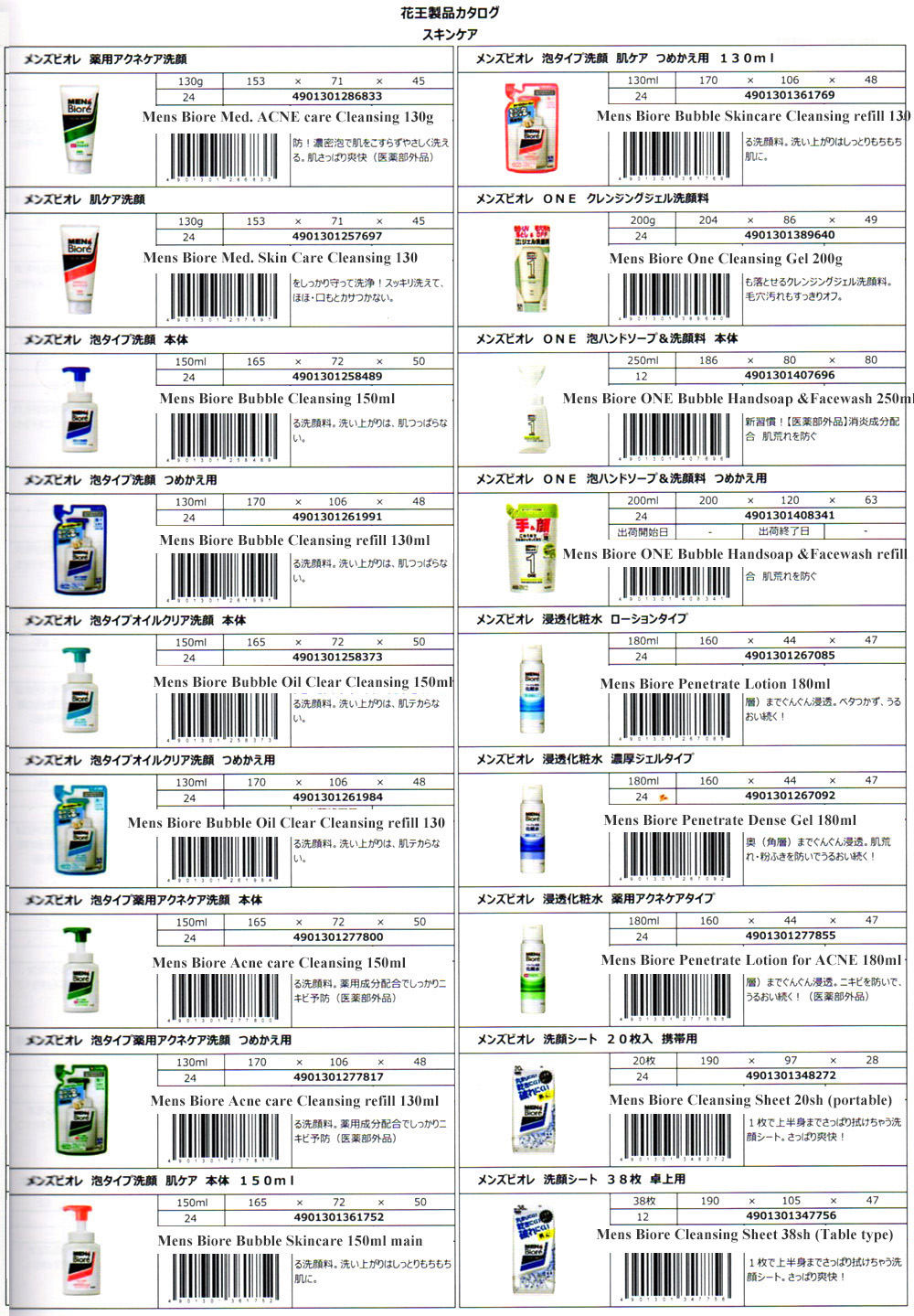 ▼Product Data: Biore Guard, Biore UV Essence & Gel, Biore Z, Mens Biore