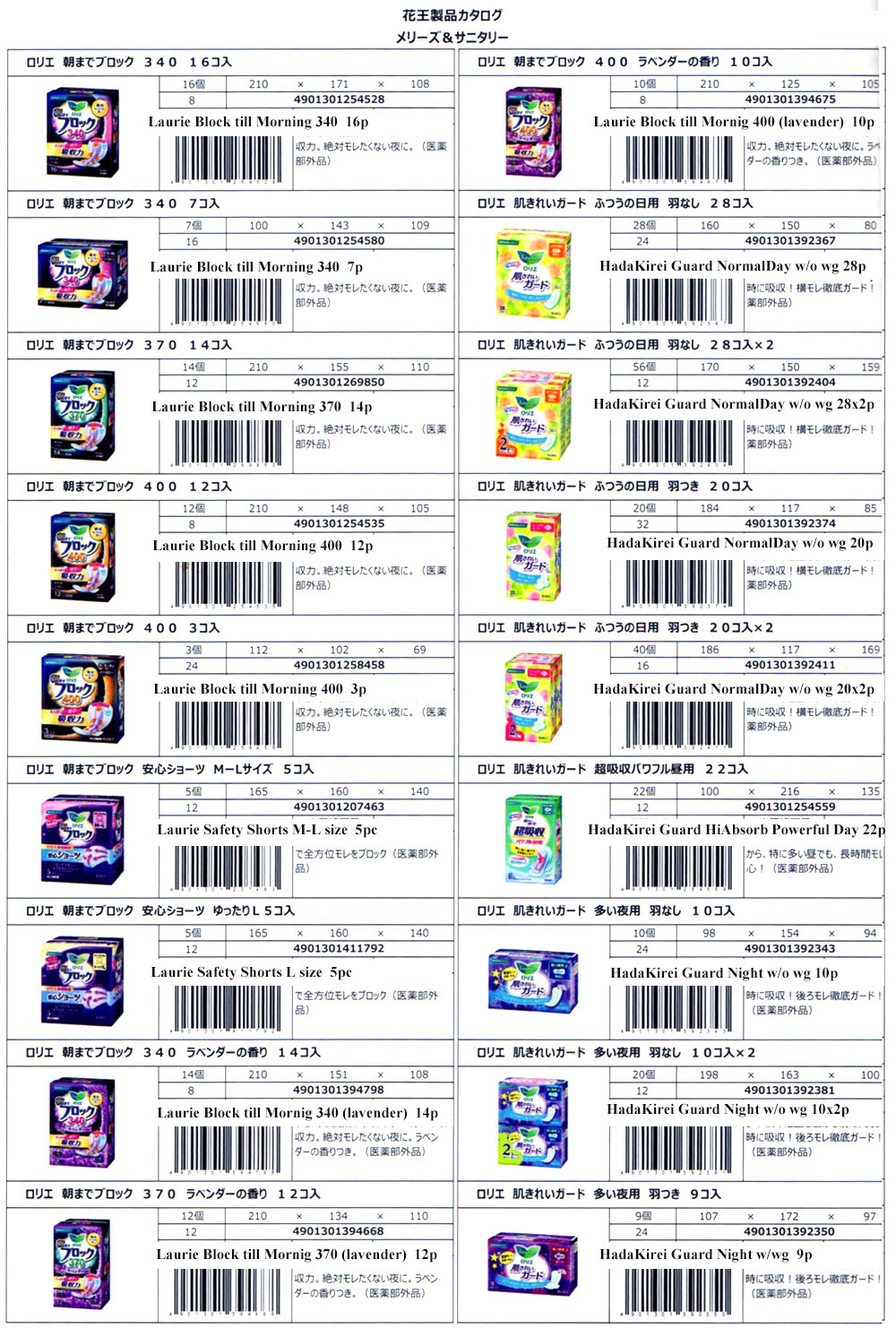 ▼Product Data: SUCCESS series, Merries Sanitary Series, Laurier Sanitary series