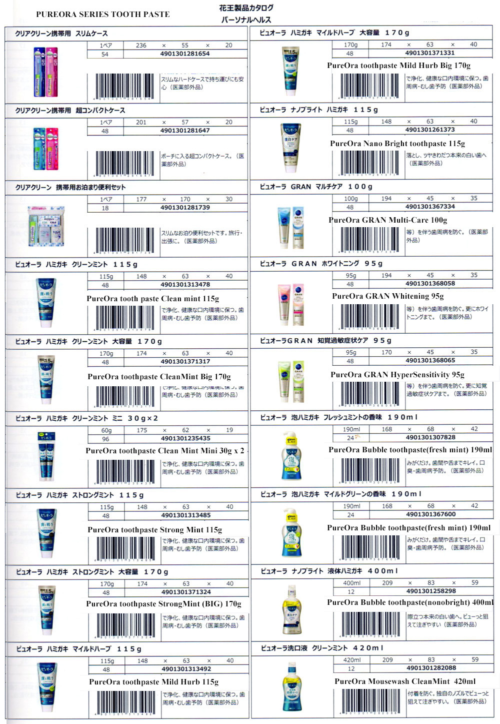 ▼Product Data: Tooth Paste Tooth Brushes, PureOra Tooth Pastes, BUB Bath Tablets